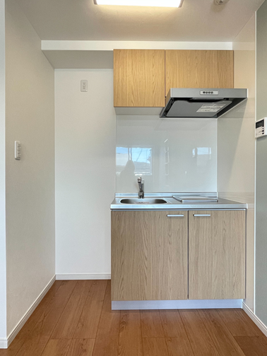ワンルームにロフトが付いた間取りでトイレとバスは別々キッチンもコンパクトながら使いやすくておしゃれな木質扉、一人暮らしの社会人や学生さんに向けた理想の賃貸アパートが出来ました。