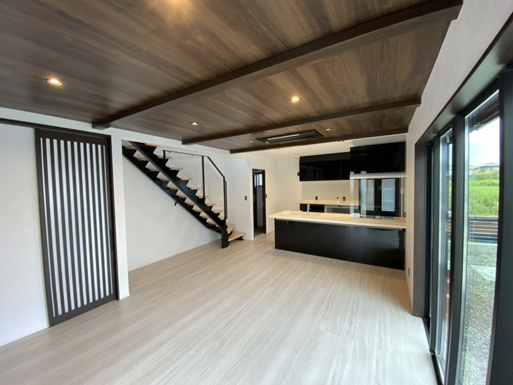 LDKはフルフラット対面を採用。モノトーンで落ち着いた空間。
