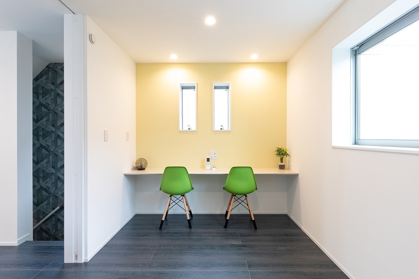 リビングにゆったりしたスペースを確保、3階は細かな仕切りを付けない工夫で寝室、子ども部屋にワークスペースも確保しました(^^♪