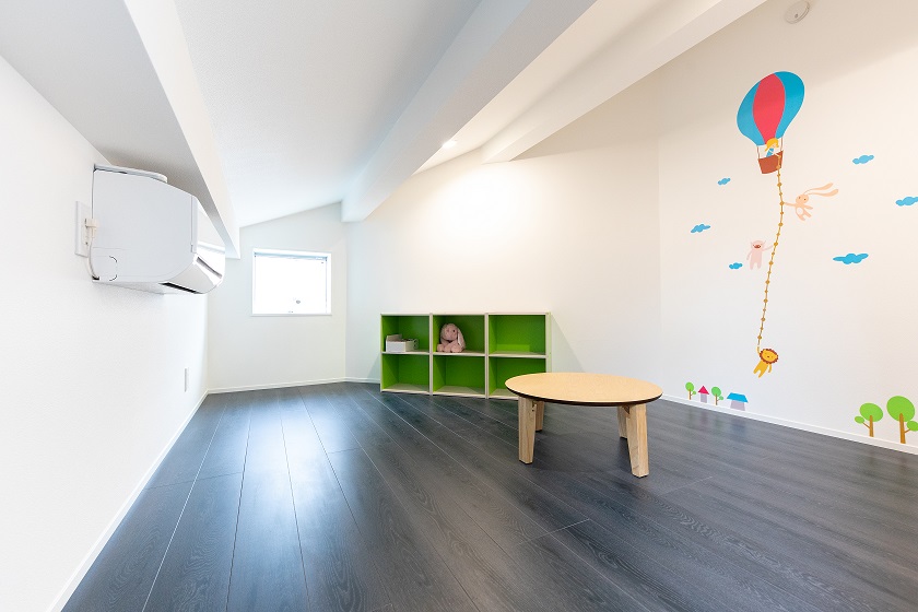 小屋裏スペースは収納兼キッズスペースとして活躍、そこを上がると庭の代わりとして屋上バルコニーを設置しました。