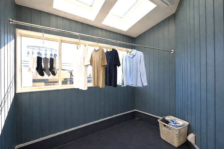 内外の統一感を出しました。ランドリールームには大きな窓とトップライトを設置して自然の採光で洗濯物を乾かします。びっくりと使いやすさを兼ねそろえたオンリーワンが誕生しました!