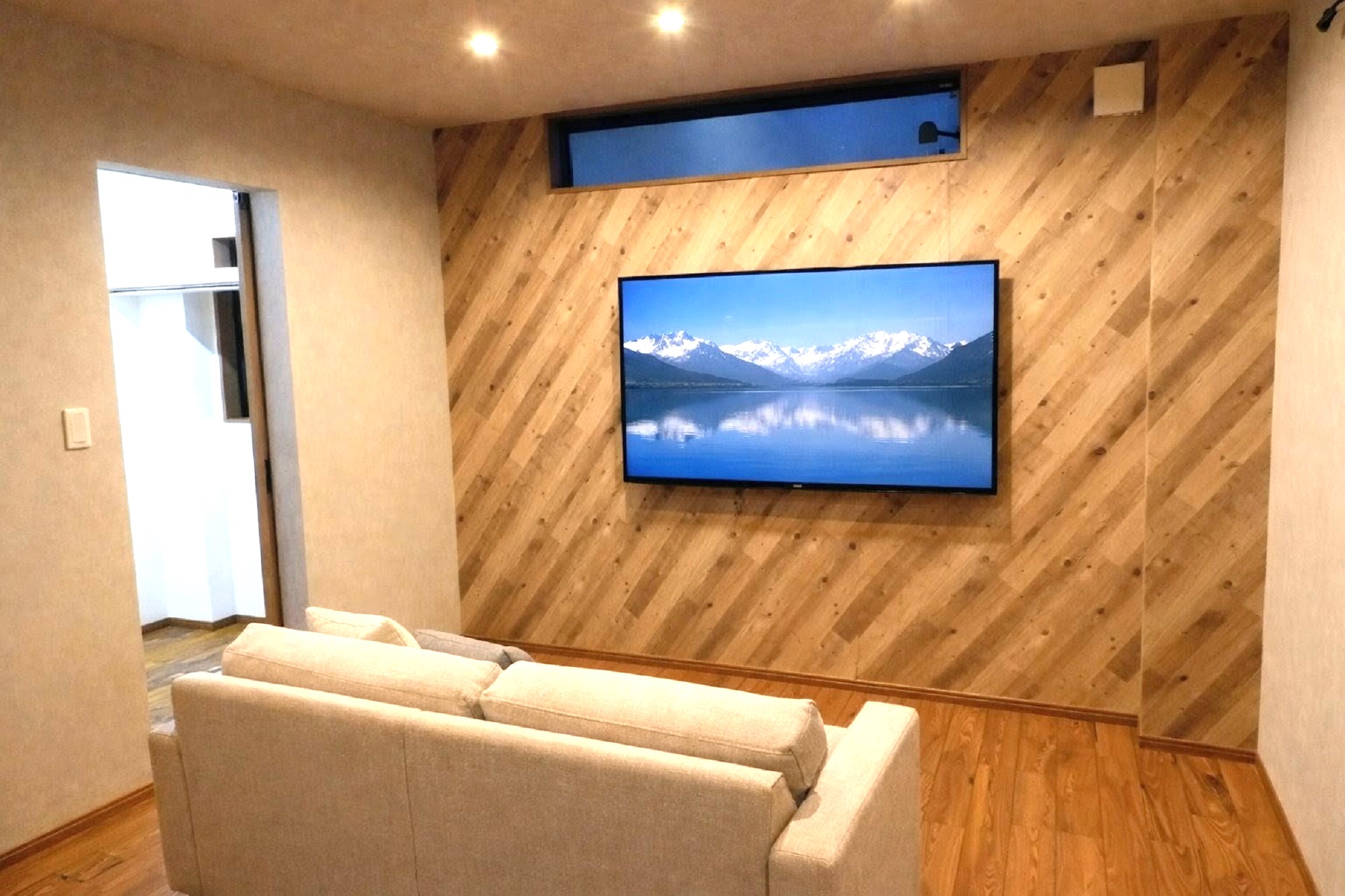 玄関ドアとバルコニー内部を木目調にしてモダンビンテージに仕上げました。