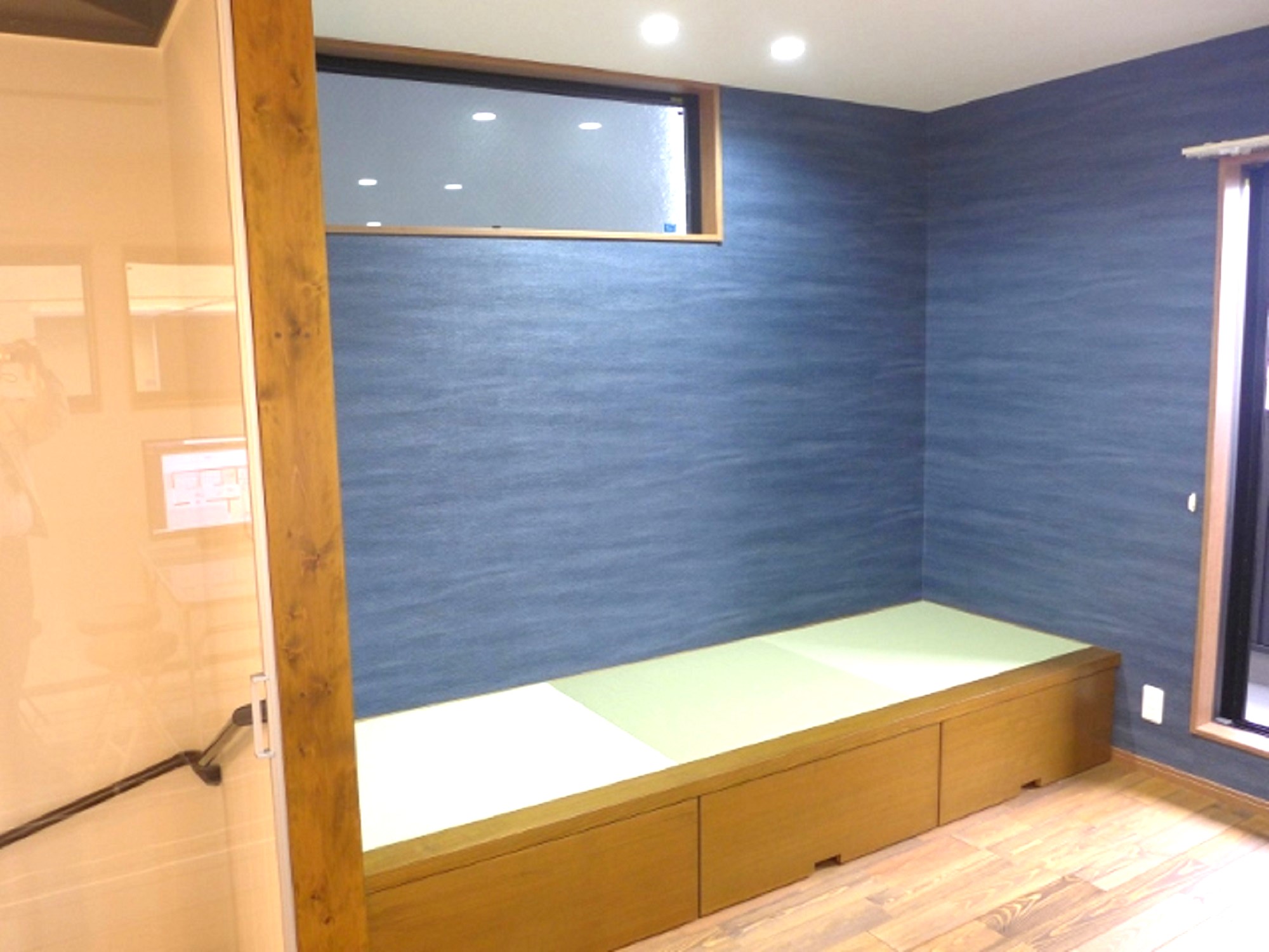 奥様から御要望のあった『小上がり畳コーナー』。実は上がるというより腰掛ける高さで制作。
