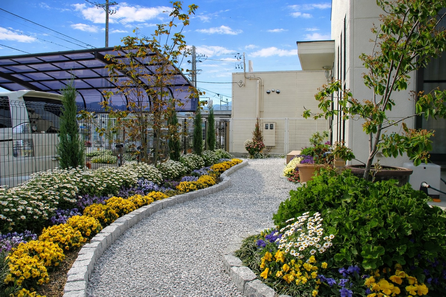 キレイに植えられた植栽のアプローチを進むと、重厚感ある外観が出迎えます!