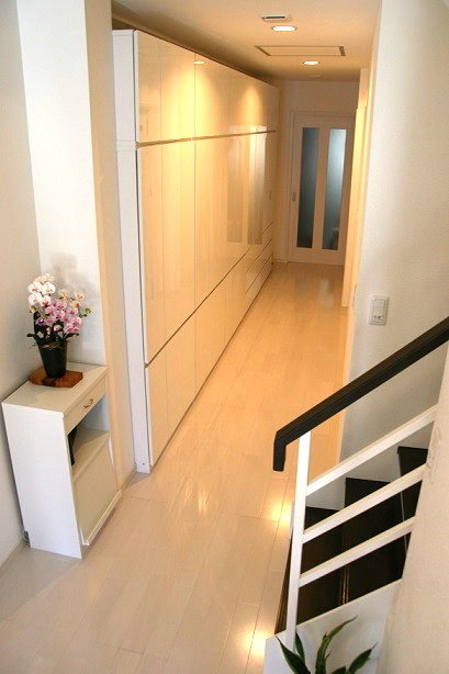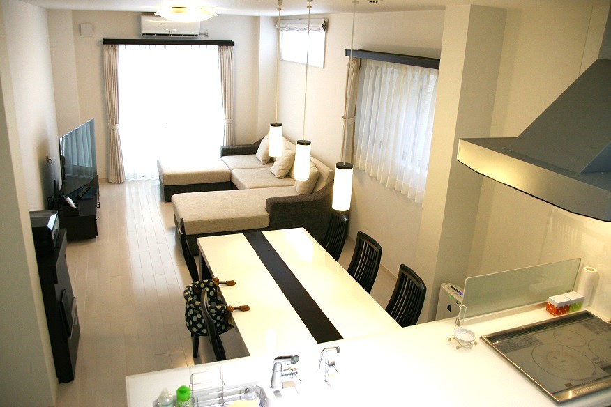 アースカラーのツートンでまとめた外観は幅3.4mを感じない堂々とした貫禄、室内は玄関入り口からLDKまでホテルライクな雰囲気に仕上げ
