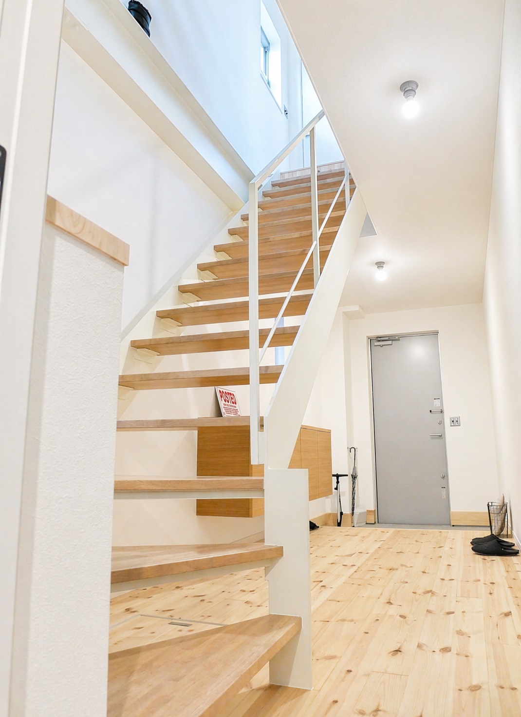 そこに無垢の木を床や階段の踏み板に使用して、香りと温もりを感じる空間に仕上げています。