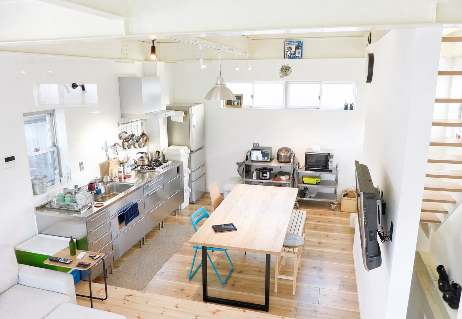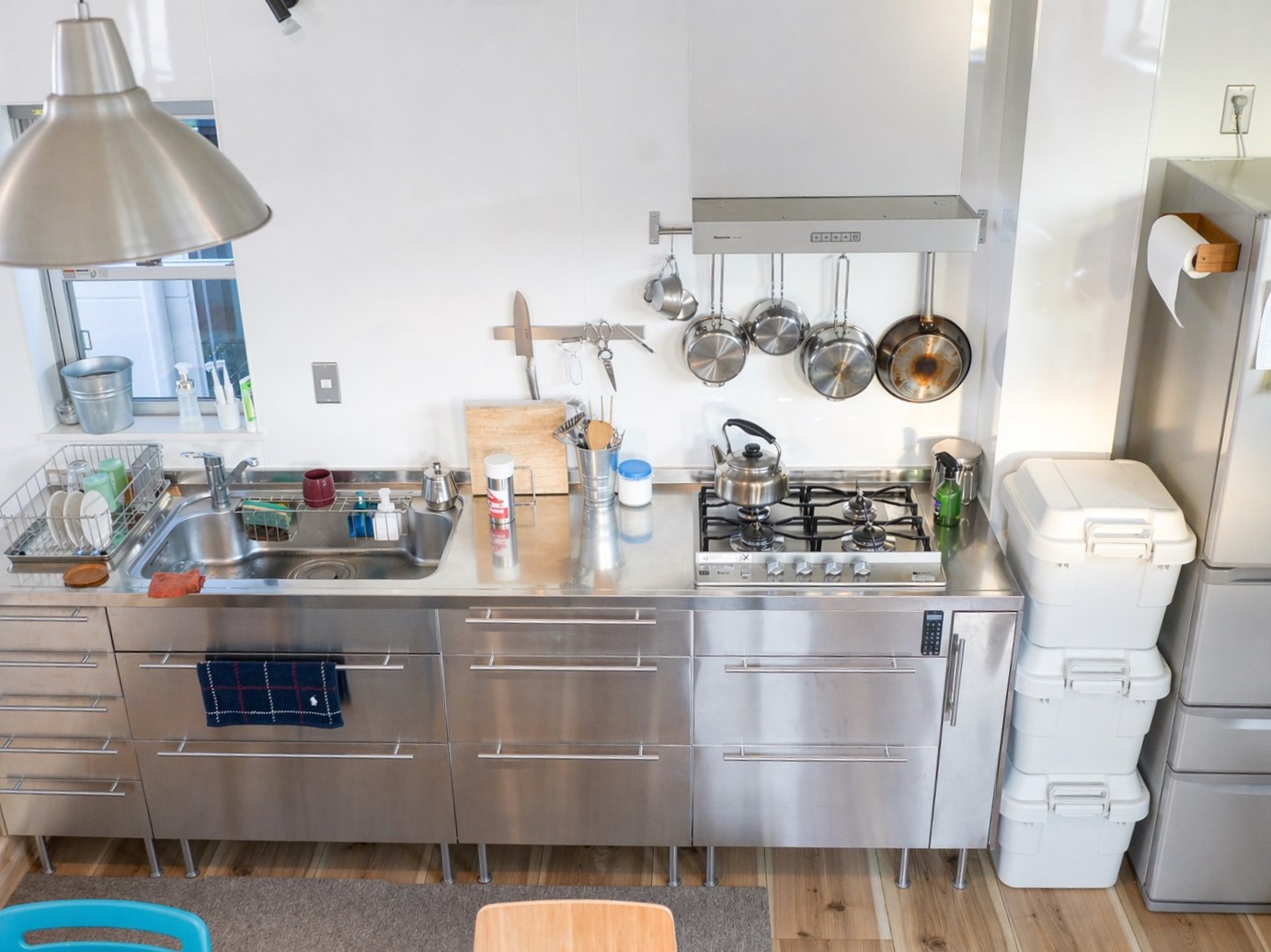 室内は鉄のカッコよさを生かし、柱や梁だけでなくキッチンも同様のイメージでまとめました。