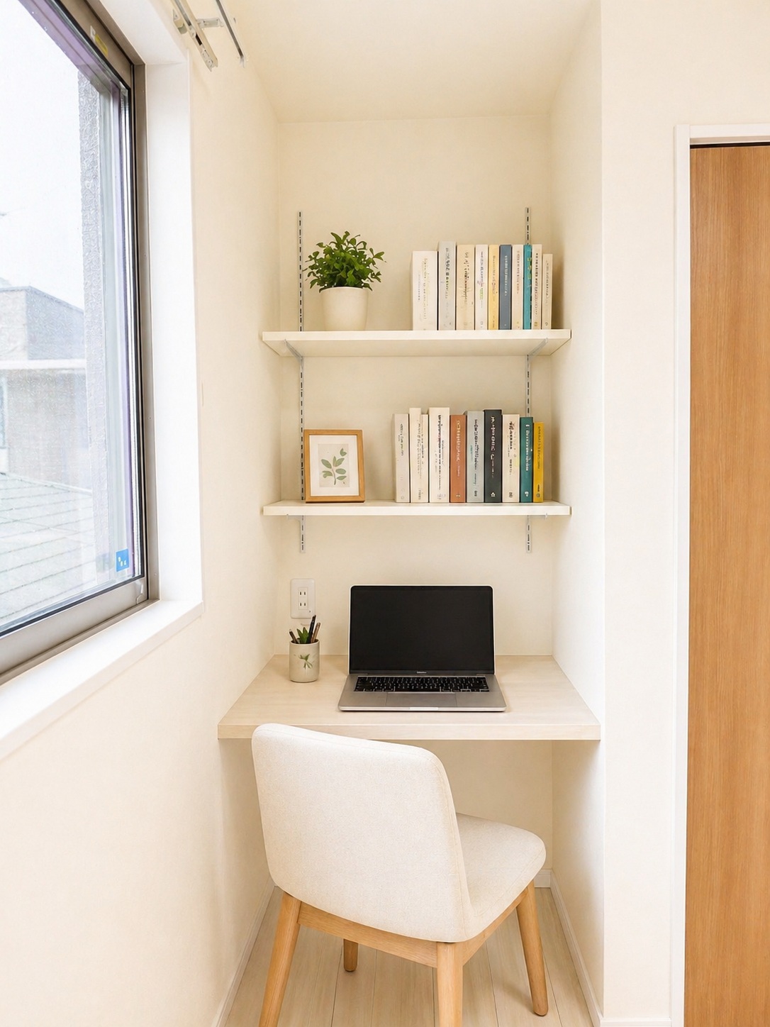 敷地面積からは想像できない、書斎スペースや収納もしかりと充実させました。狭小地を無駄なく使い切った夢のマイホームが完成しました!