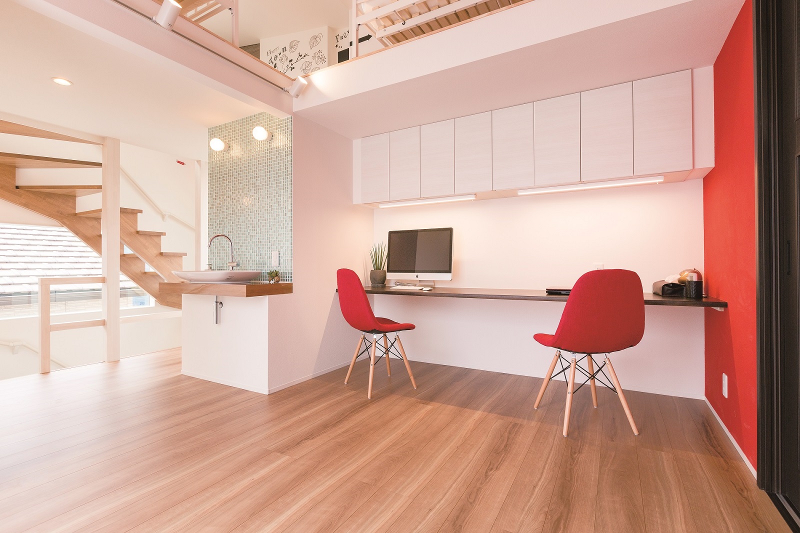 実は1階にはリモートワーク用のオフィスまで併設して、土地の狭さを一切感じさせない夢の詰まったマイホームが完成。