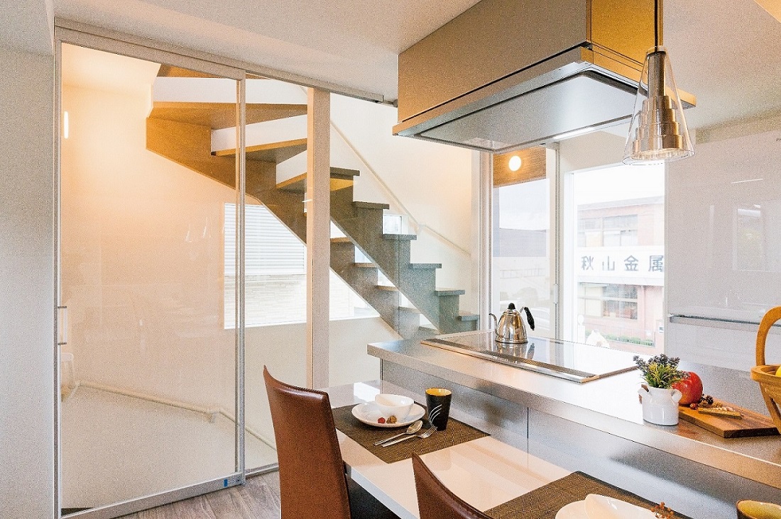 2階LDKにセンターキッチンを設置して、家族みんなのカフェスタイルで団欒。