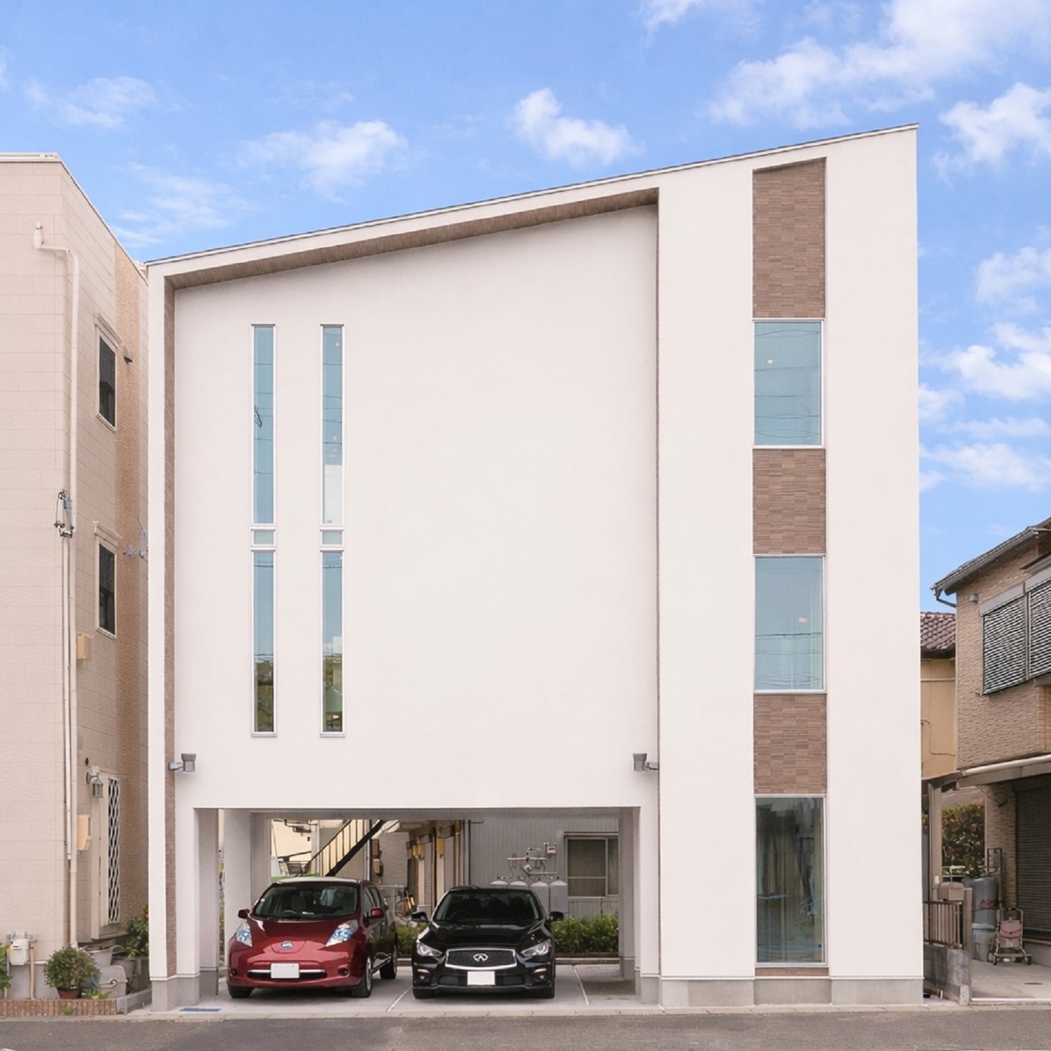 18坪(幅10m×奥行6m)の土地に、3階建ての5LDK+ビルトインガレージが2台分のマイホームが実現。