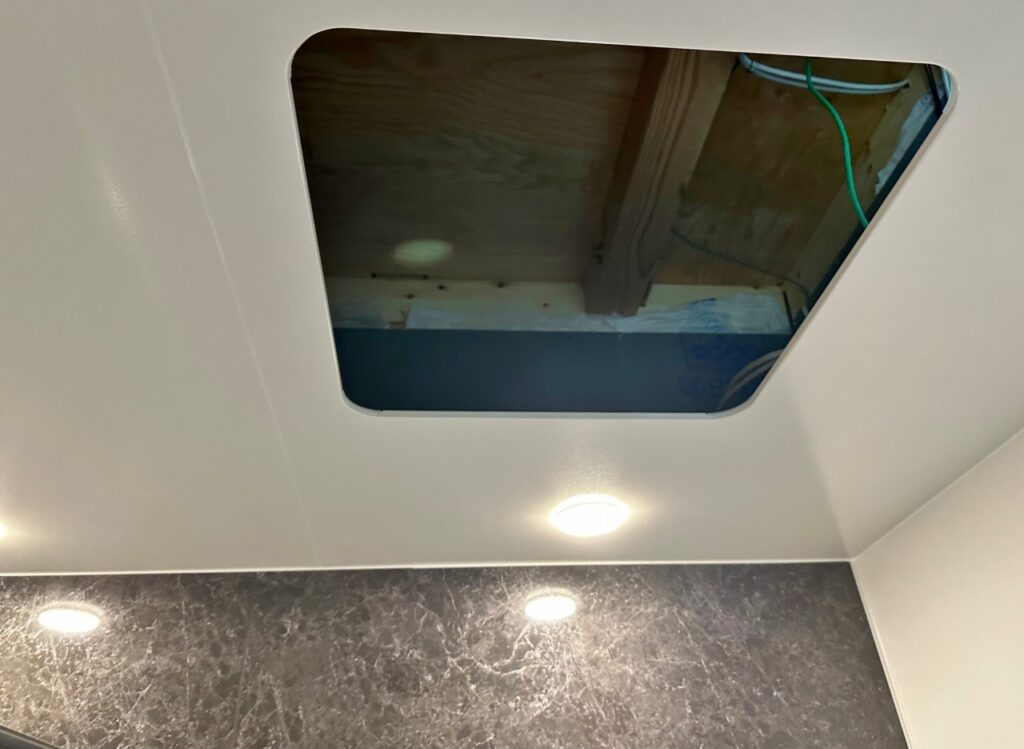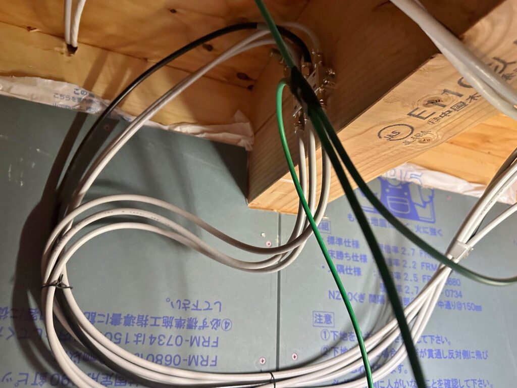 配線はお風呂の天井にある点検口から頭を突っ込んで洗面に配線。