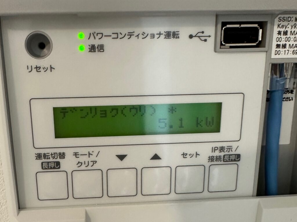 発電してる5.6kWだけでは賄えず、2.3kW購入中。