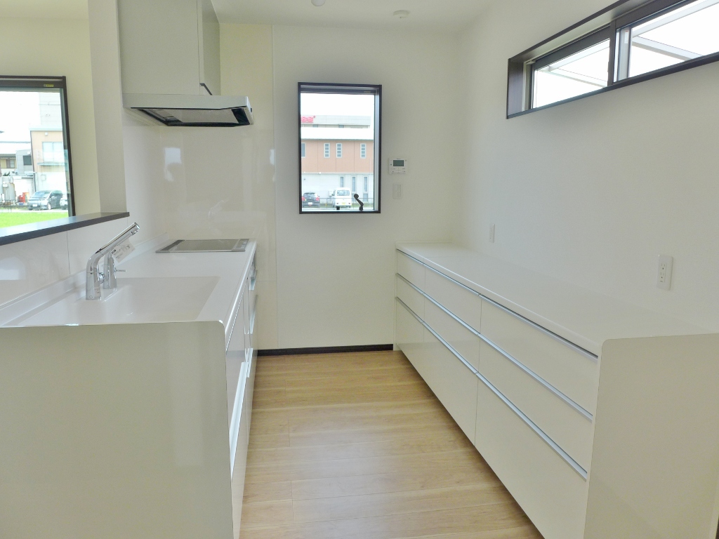 カウンター収納にすると背面からも明かりを採りながら、調理機器も使いやすい。