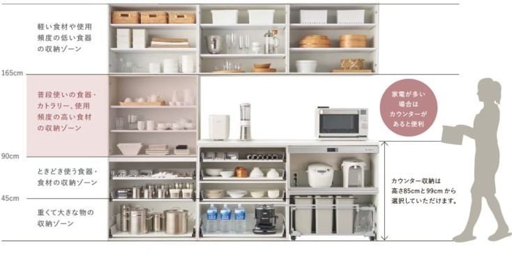90~165㎝のゾーンにすると作業効率が上がります。