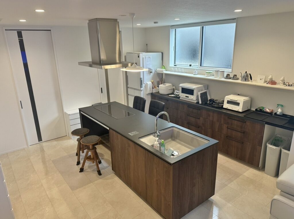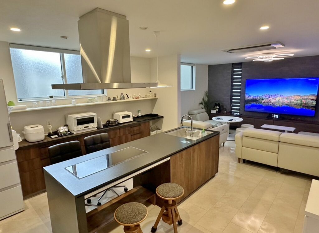 アイランドキッチンにする事で動線の自由度が広がります。