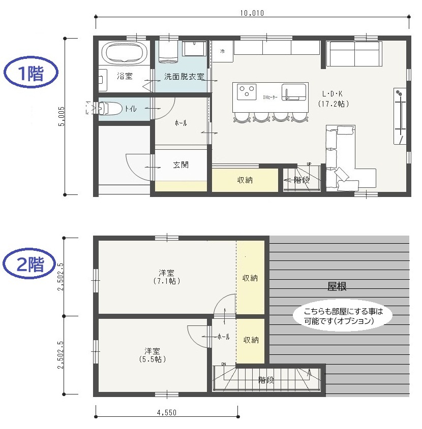 建坪は5m×10mの50㎡(15坪)