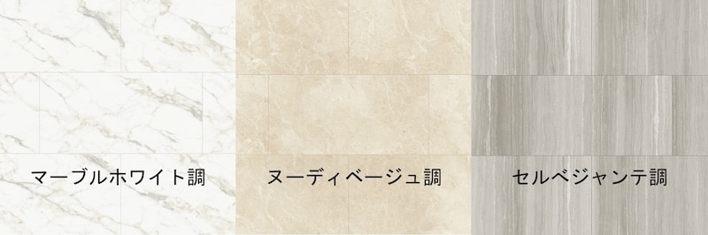 モルタルやタイル調のデザインや大理石調が発売されています(リクシルさんのフローリング)