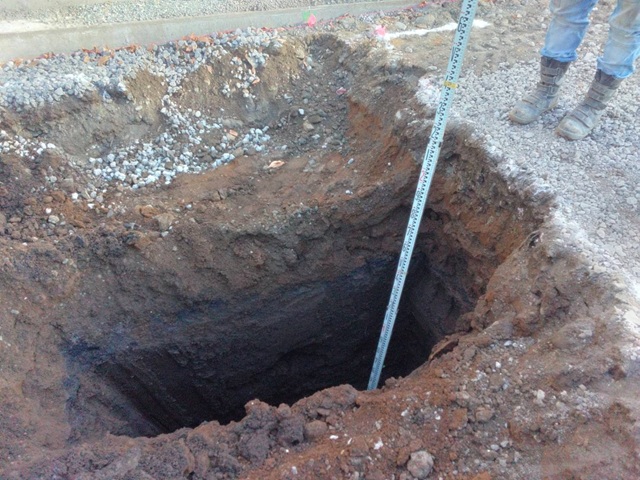これだけ堀り5tもの固化剤と混ぜるので、掘り起こした土は一部処分します。