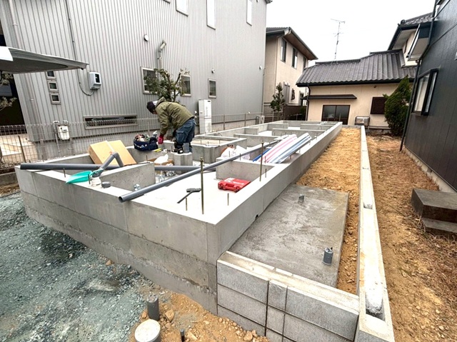基礎が完成し、水道屋さんの出番!