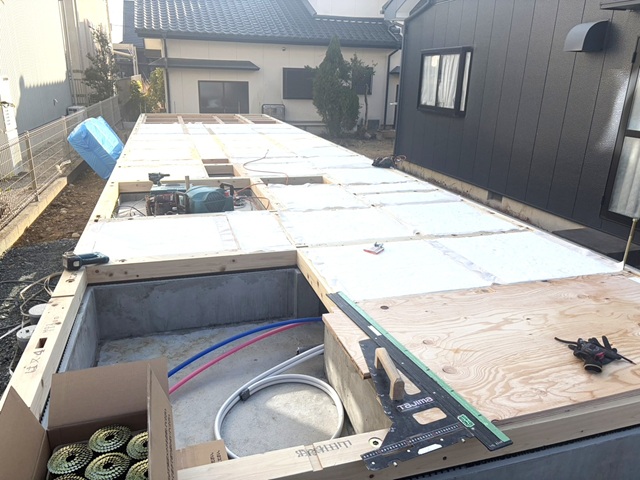 給排水工事が終わると、土台の工事。