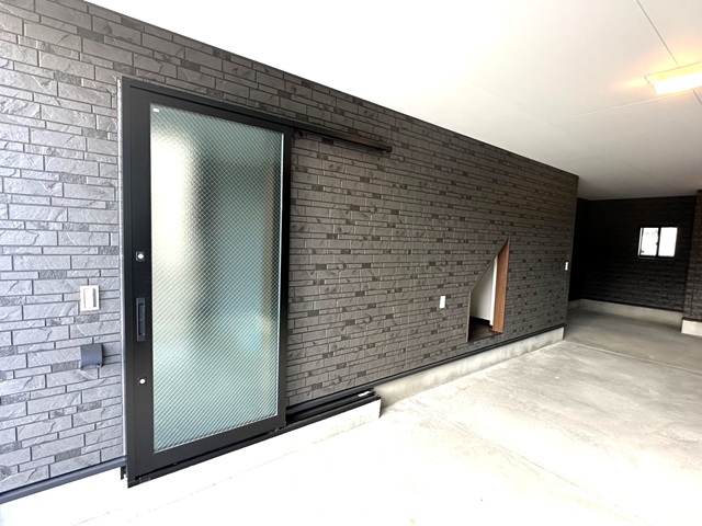 ガレージから直接玄関ホールへ続くドア、屋外と出入りできるドアもつけています。