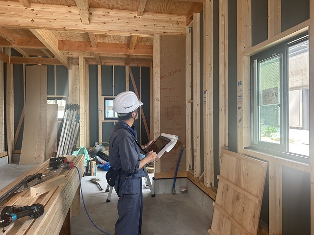 構造強度に関する骨組や耐力壁、補強金具の位置を細かくチェックしています。