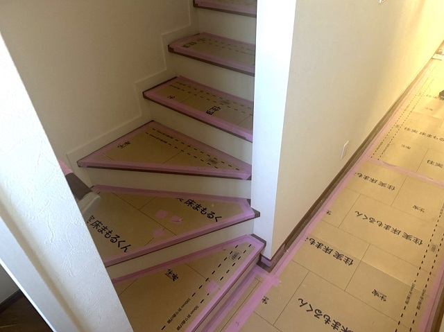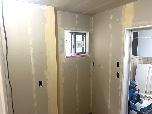 U様邸の内部では、クロスを貼る準備にはいっています。