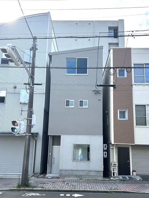 左右と奥側、高い建物に囲まれている敷地にピタっとおさまりました。