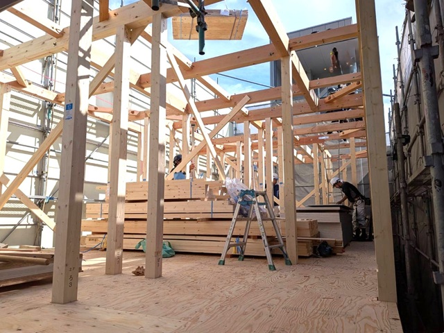弊社工事担当、Y様ご家族様が見守る中、小屋裏・屋根へと順調です♪