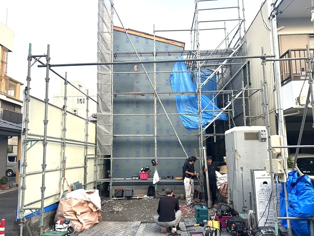 上棟は一日で屋根まで組むので、数人の大工さんに応援に来ていただいています。