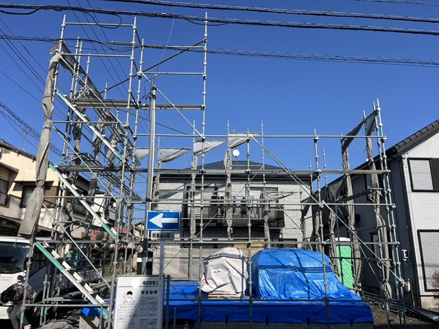 一部の材料が搬入され、足場を組みました。