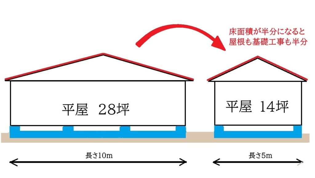 基礎も屋根も2倍の面積になり、工事価格に影響が出るからです。