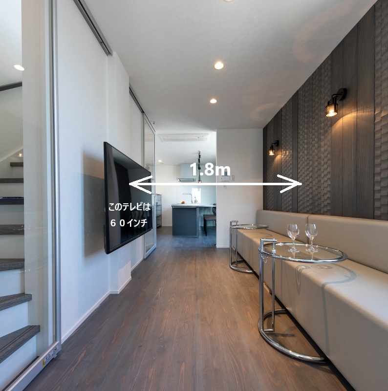 階段幅で1メートル使って、残りが2m弱の幅に60インチTV