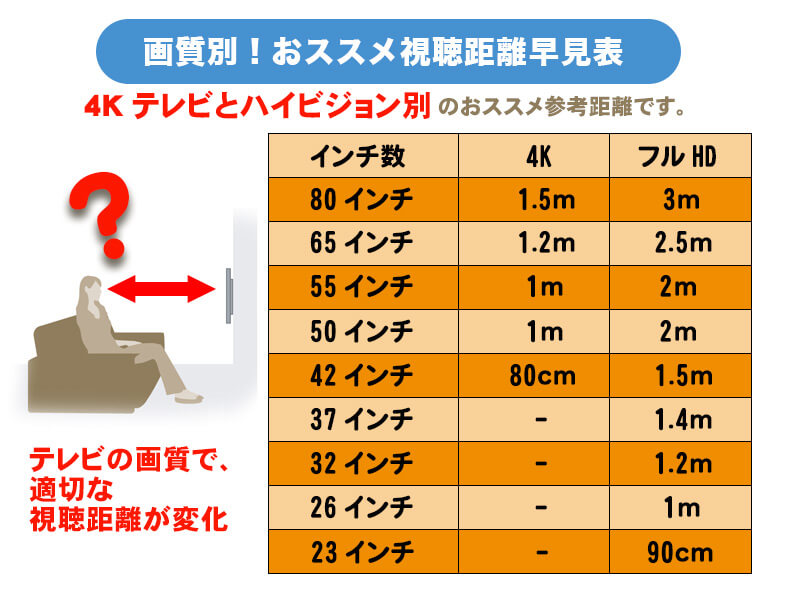 視聴距離のオススメの早見表がありました。