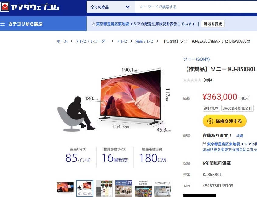 東新田のモデルハウスは85インチを設置。ヤマダ電機さんで購入。