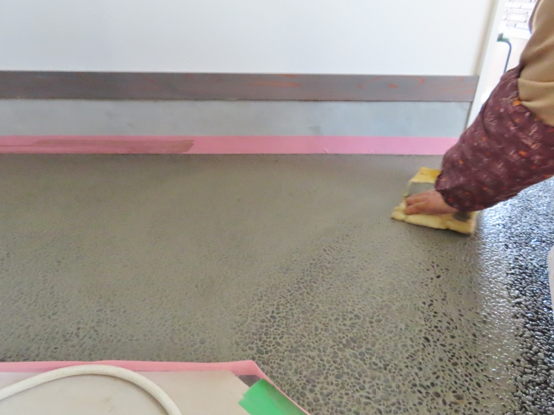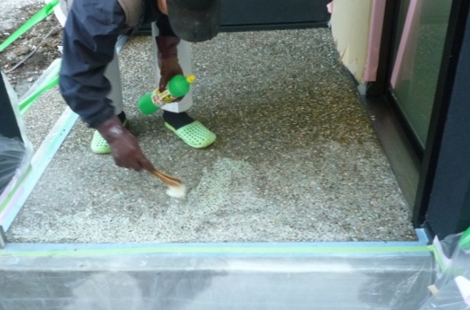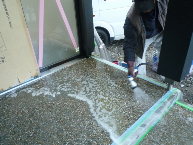 最後に表面を『洗い』流して骨材を『出す』施工方