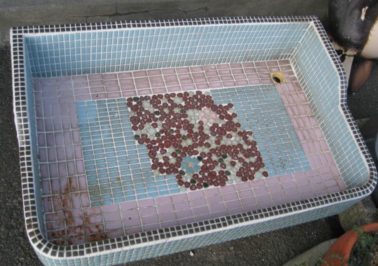 現在では、床はタイルが王道ですが【洗い出し】は文字通り砂利にセメントを流し固めて