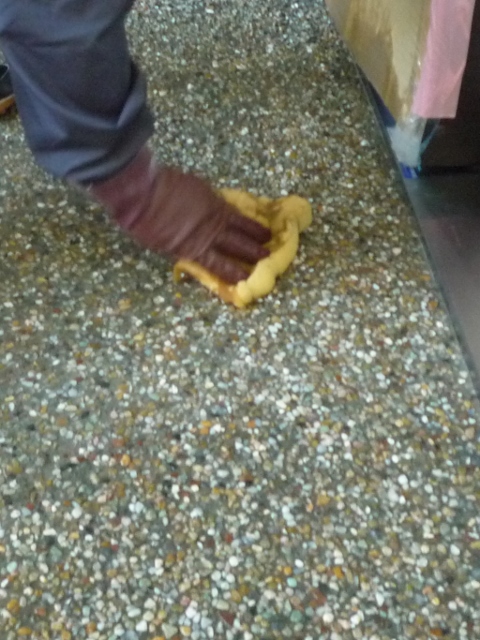 仕上げはサンポール(酸性洗剤)で表面のモルタルを洗い流します。