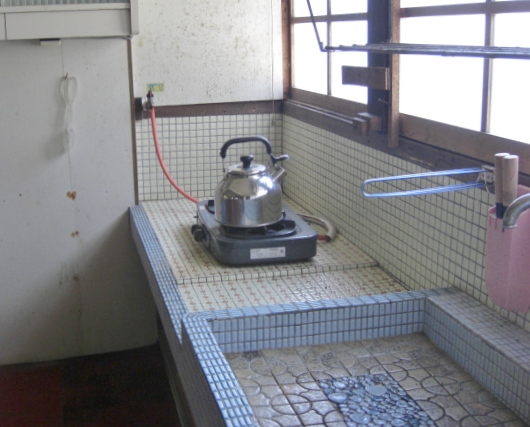 まだシステムキッチンが無い時代の水場はタイルで製作。