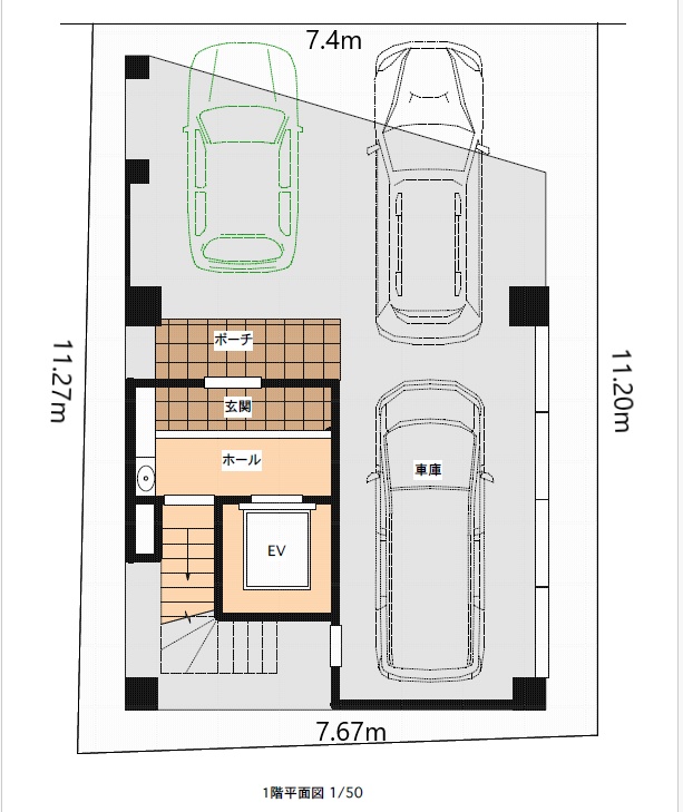 用途地域:第二種住居地域 道路:北西22.5m(幅員)