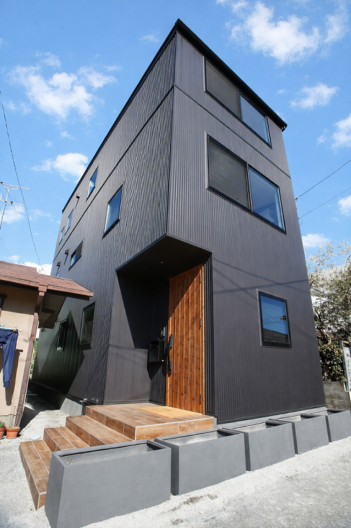 モダンビンテージにこだわったブラックメタルの3階建て