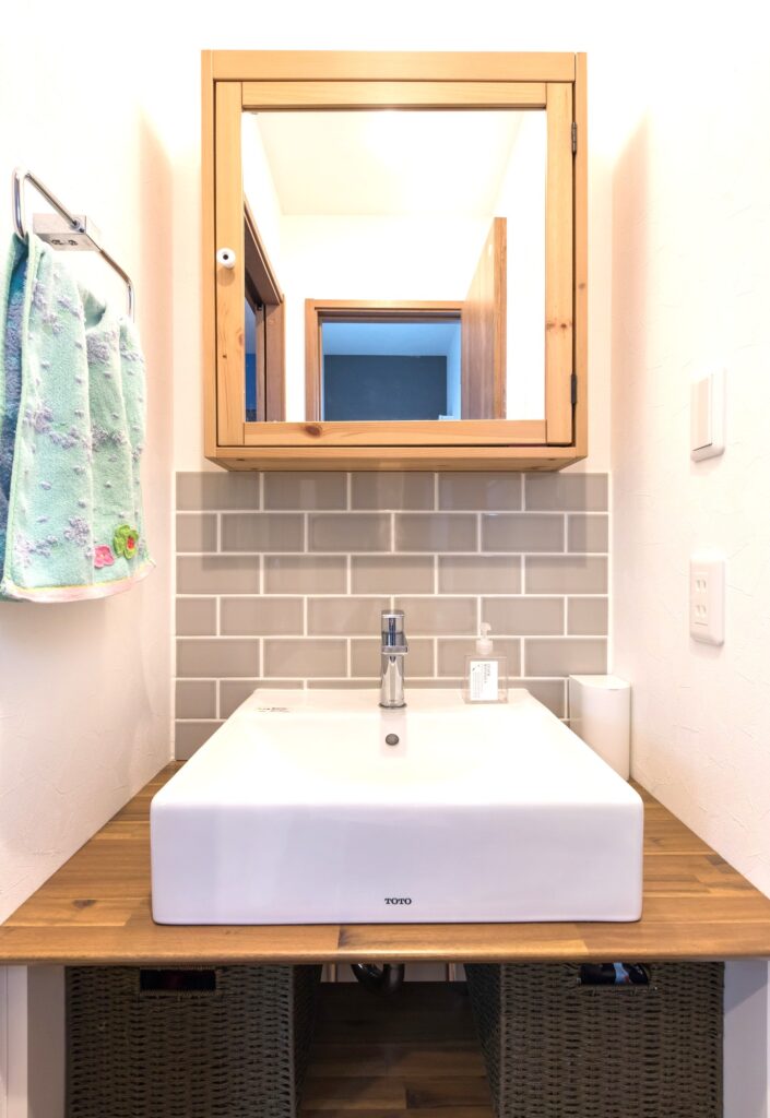 こだわったのは、内外装ともにネイビーとウッド色の組み合わせを統一したこと、造作洗面などのオンリーワンな仕上げです。建築システムさんは、狭小住宅の提案力だけでなく自分たちがこれをやってみたい、こんな材質を使ってみたいなどのわがままにも細かく対応してくれます。これからこのお気に入りの家で新生活がスタートします(^^)/